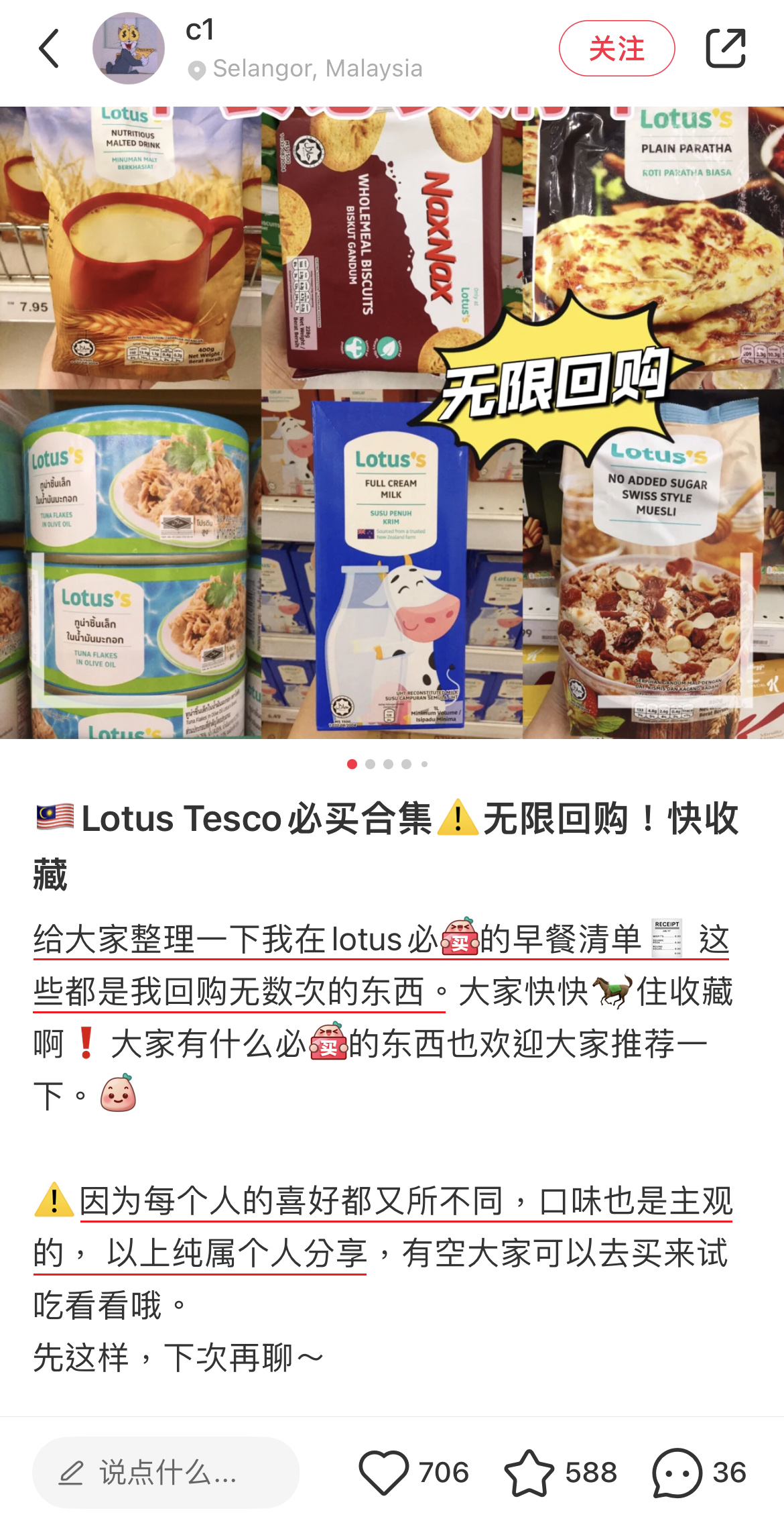 大马小红书博主发文分享8款 Lotus’s 健康又好吃的好物,加上评论区还有网友们推荐的2款,都是高度好评无限回购的!