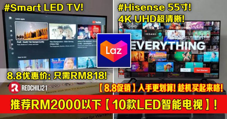 最近想买一台平价的智能电视但又不知道从何选择?以下就是在 Lazada 好评度最高的10款 LED 智能电视,统统都在RM2000以内!8月8日大促销下单更便宜哦!