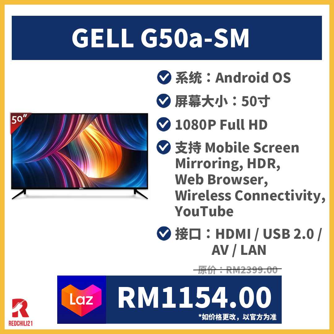 ▪ ① GELL G50a-SM Smart TV 50 inch 安卓电视