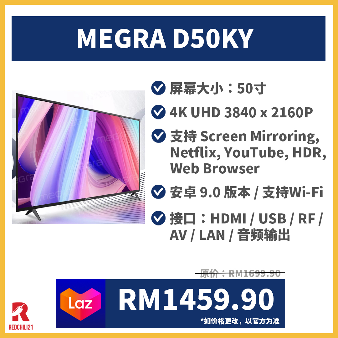 ▪ ③ MEGRA D50KY 50″ 4K UHD 数码智能电视