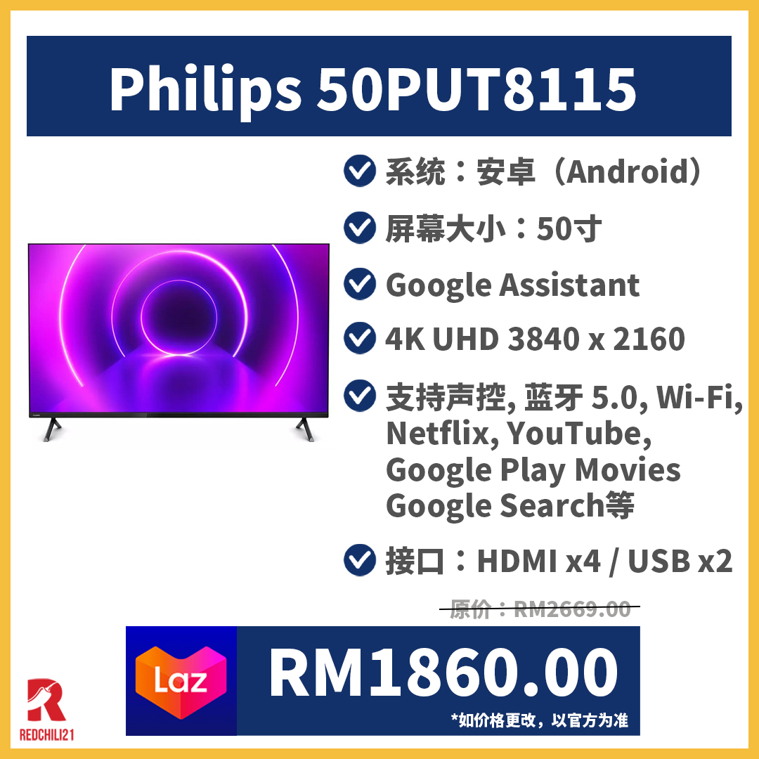 ▪ ④ Philips 50PUT8115 50 Inch 4K UHD Android TV 安卓电视