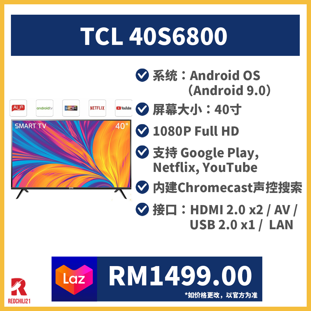 ▪ ⑤ TCL 40S6800 40″ S6800 安卓 AI 智能电视