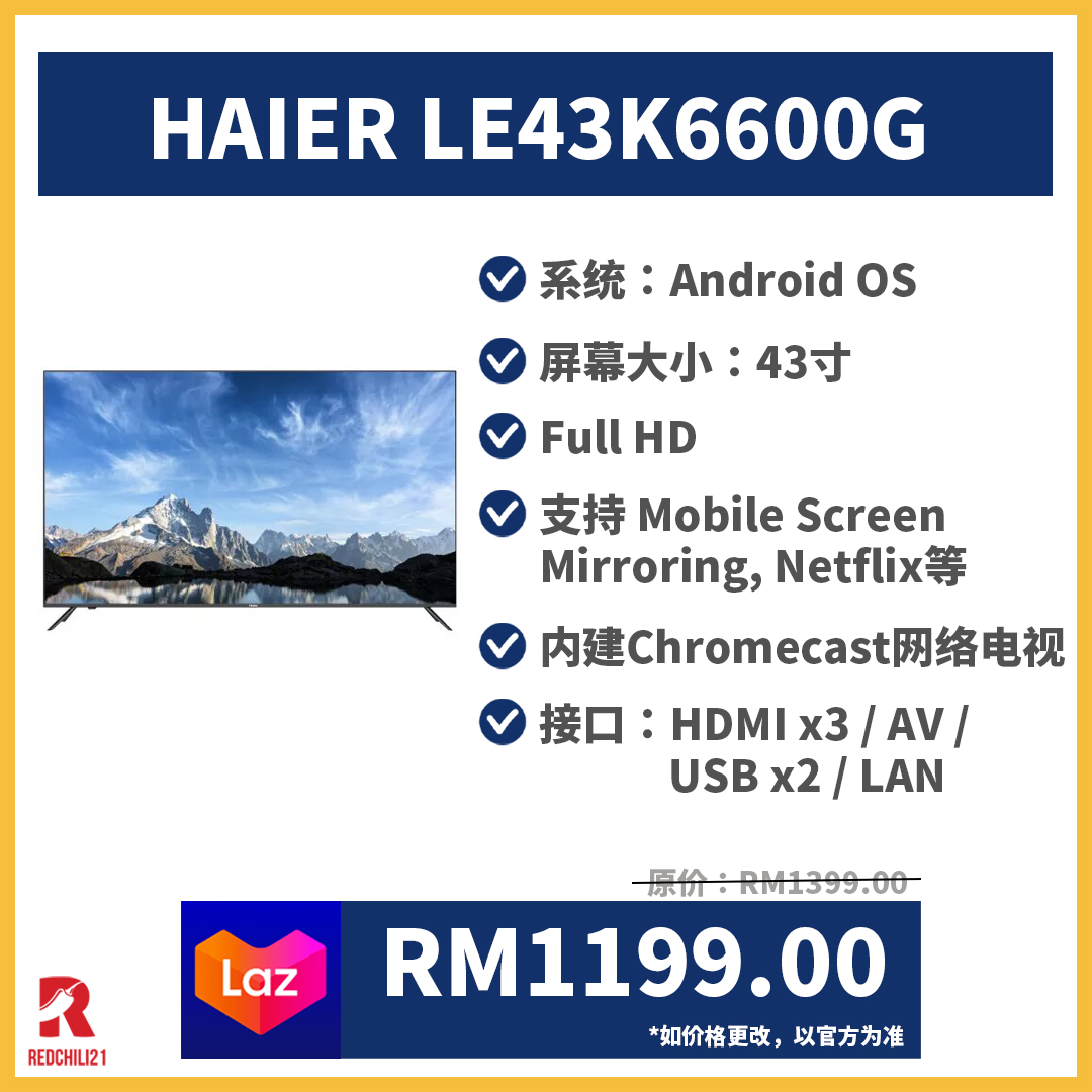 ▪ ⑦ Haier LE43K6600G 43” inch 安卓智能电视