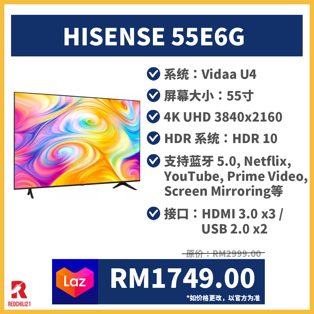 ▪ ⑨ Hisense 55E6G 4K Smart UHD TV 智能电视