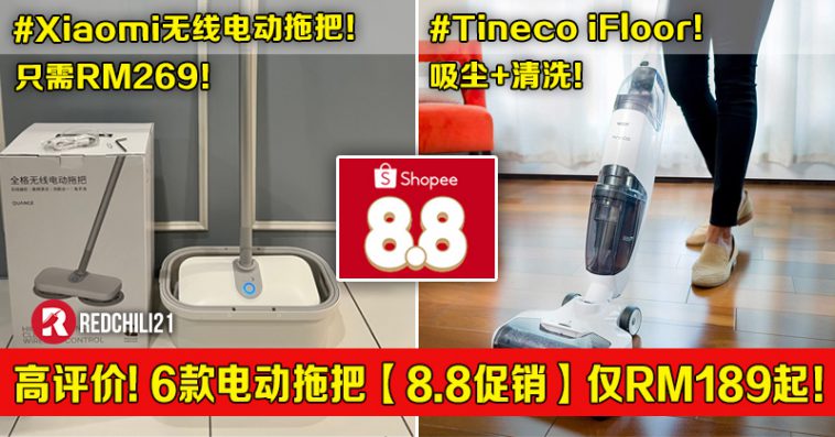 现在就为大家推荐 Shopee 高评价的6款电动拖把,最低只需RM189就能买到!这次8.8购物节下单更划算哦!