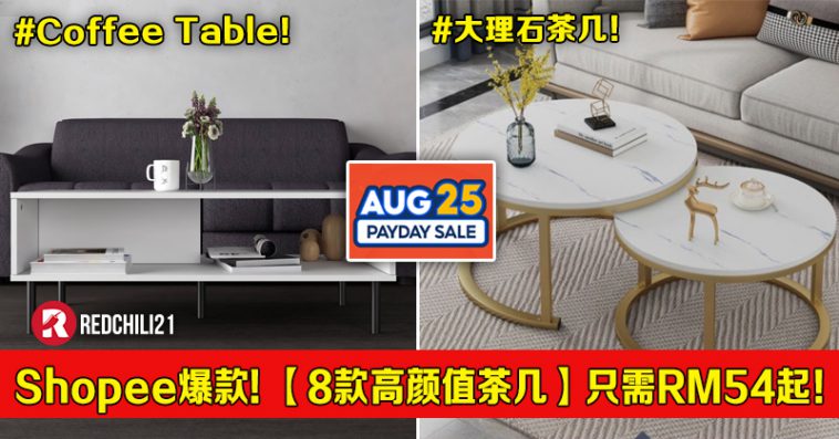 以下8款高质量、高颜值的茶几,全部只需不到RM180哦!Shopee 6月25日 Payday 促销最低只需RM25!