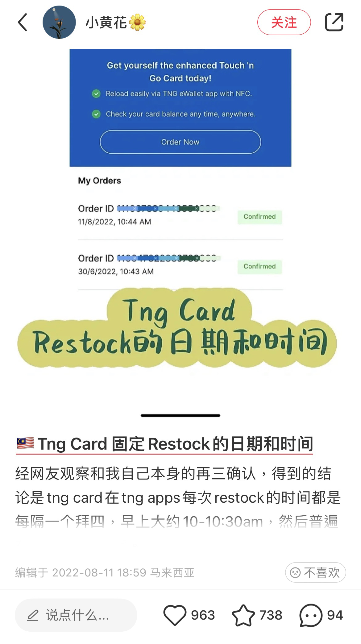 抢购 Enhanced TNG 卡其实只要抓到小 tips 就能成功啦~小红书网友近日分享自己的购买心得,把这些时间段记下来,下次就不会再抢不到啦~