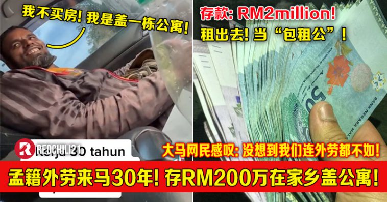 近日 Twitter 网友上传一段视频引发讨论,一名孟加拉籍外劳在马来西亚打工30年之久,靠着自己的努力存下了RM200万,还在家乡盖一栋公寓当起了“包租公”!