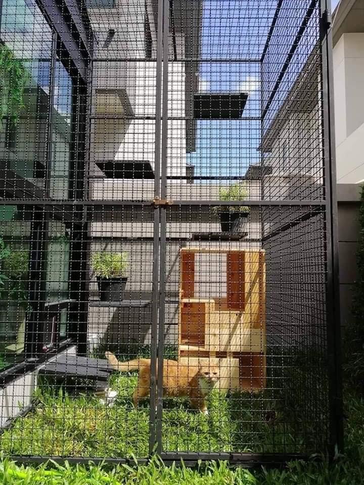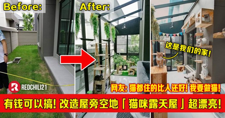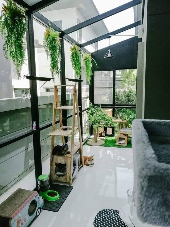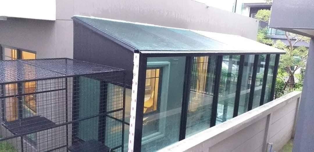 就像这两位猫咪主人,直接在半独立的房子旁边盖一栋给猫咪住的“露天玻璃屋”,超漂亮der~
