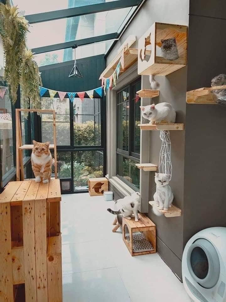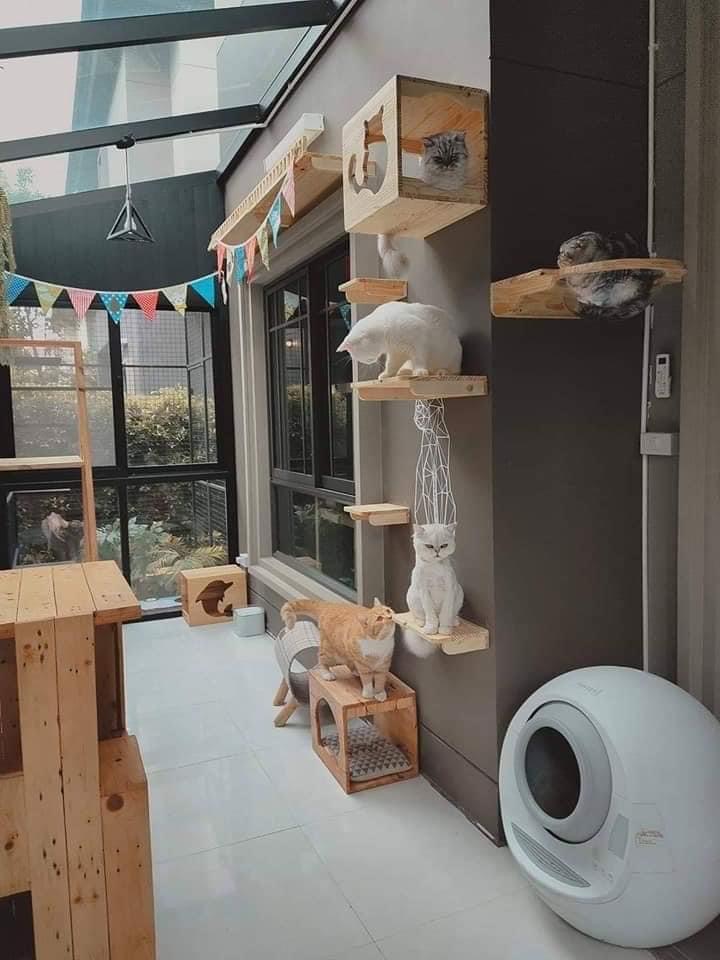 ▼ 几只猫咪住在一起,如此惬意的生活… 这个露天屋也太美了吧~