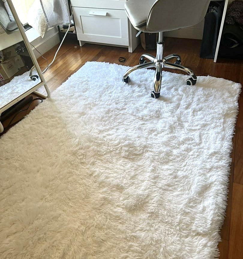 「白色毛茸茸的地毯很好看,踩上去的时候还会感觉凉凉的!」