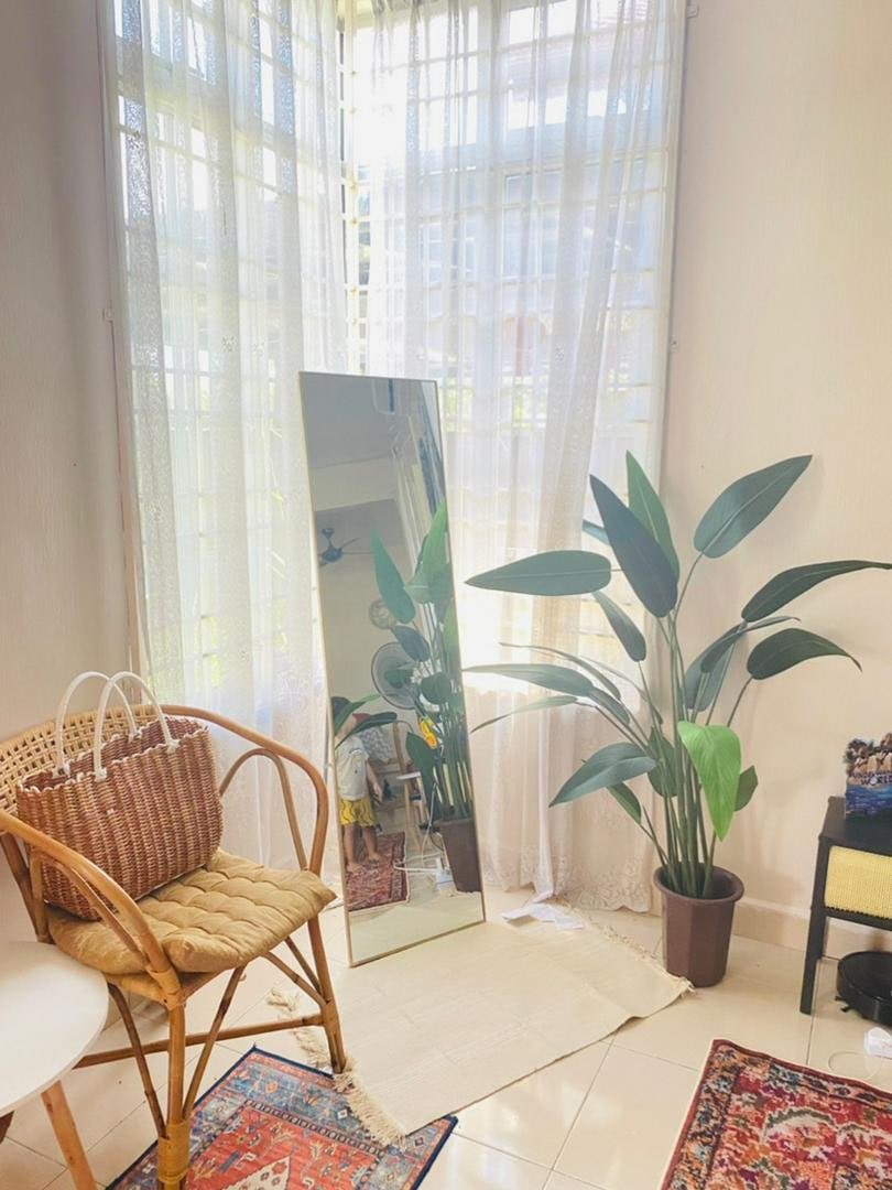 「如果有一面全身镜,卧室看起来就会更漂亮。不会很占空间,适合简约风的卧室。」