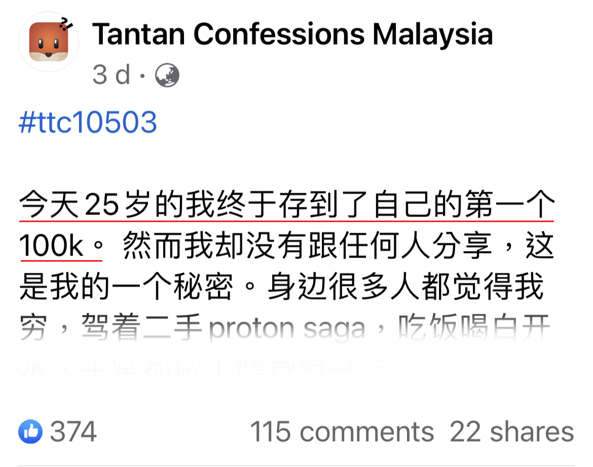 近日网友纷纷在“Tantan Cofessions Malaysia”投稿分享有关存款的秘密,你以为他们很穷?不!他们是穷到只剩钱!