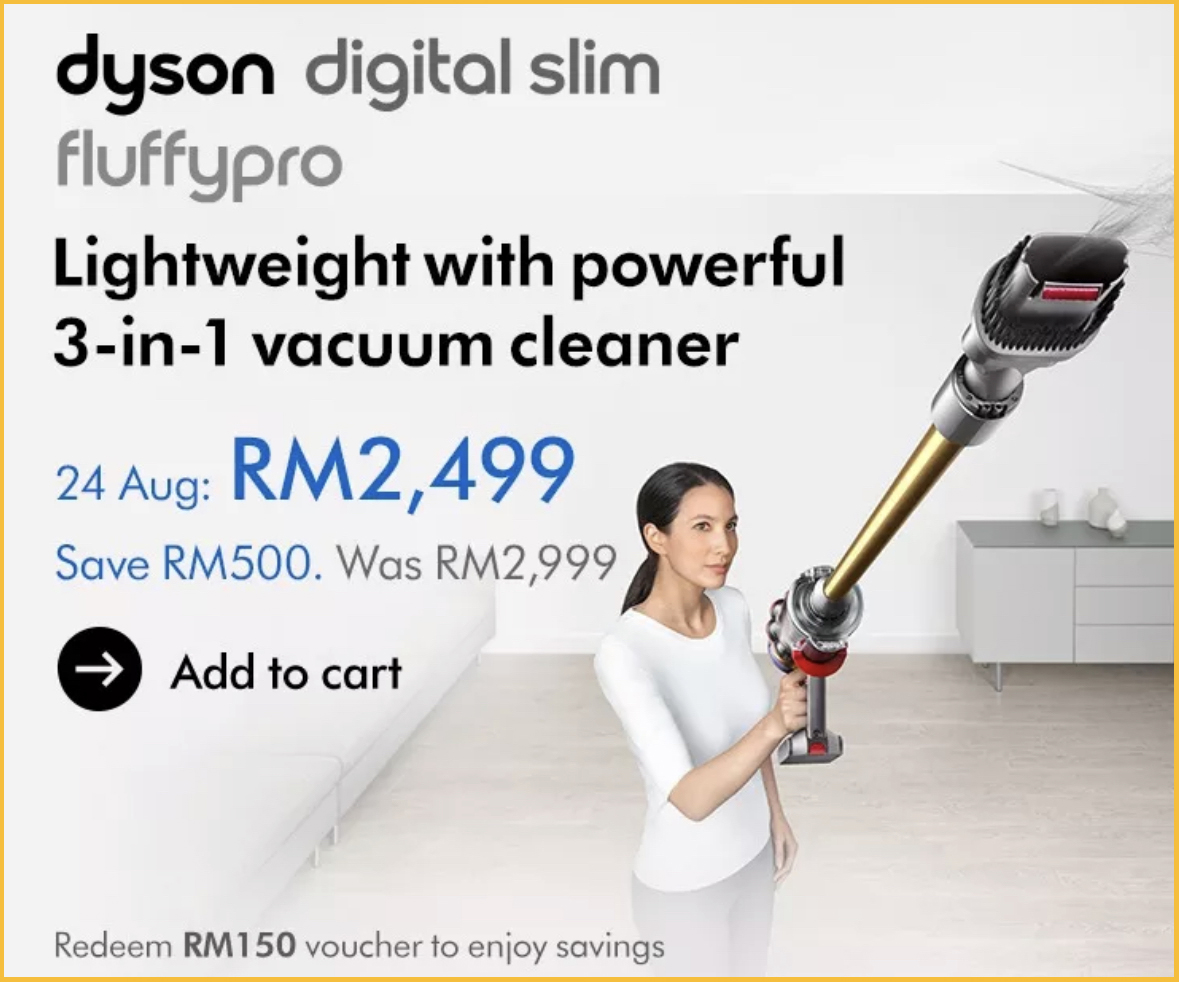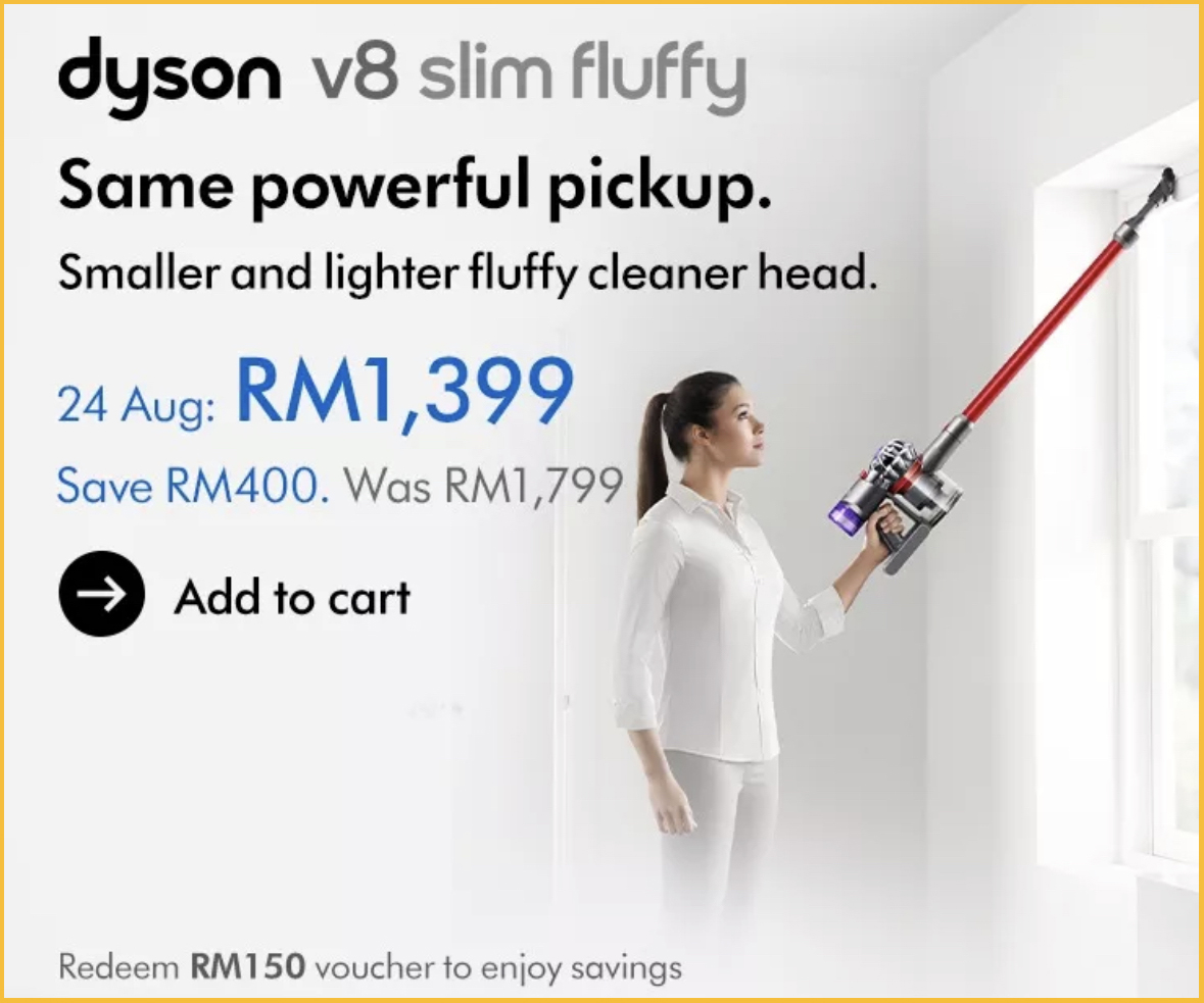 ▼ ① Dyson v8 Slim Fluffy(原价 RM1,799)