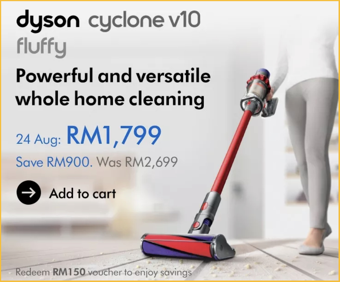 ▼ ② Dyson Cyclone v10 Fluffy(原价 RM2,699)