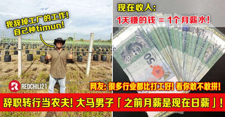 卸下打工人的身份转行去当农夫种地,如今一天的收入是以前的一个月薪水,说的就是这名大马男子的真实故事!