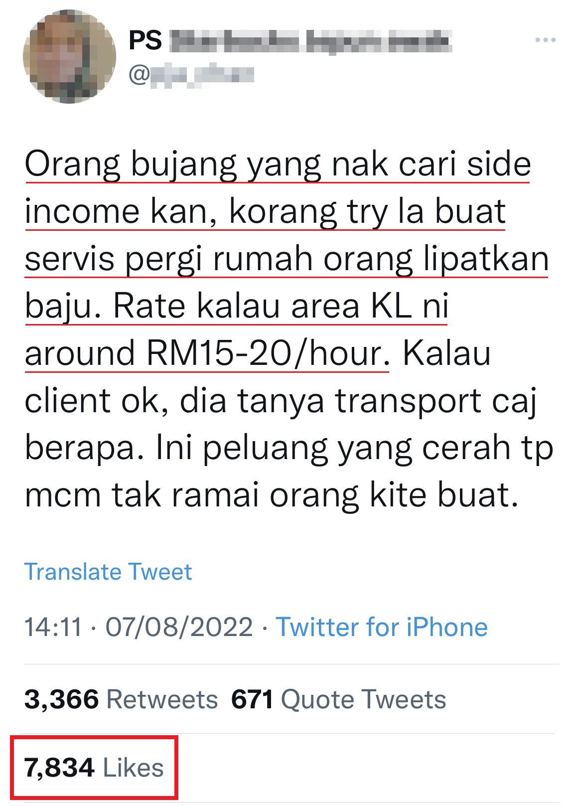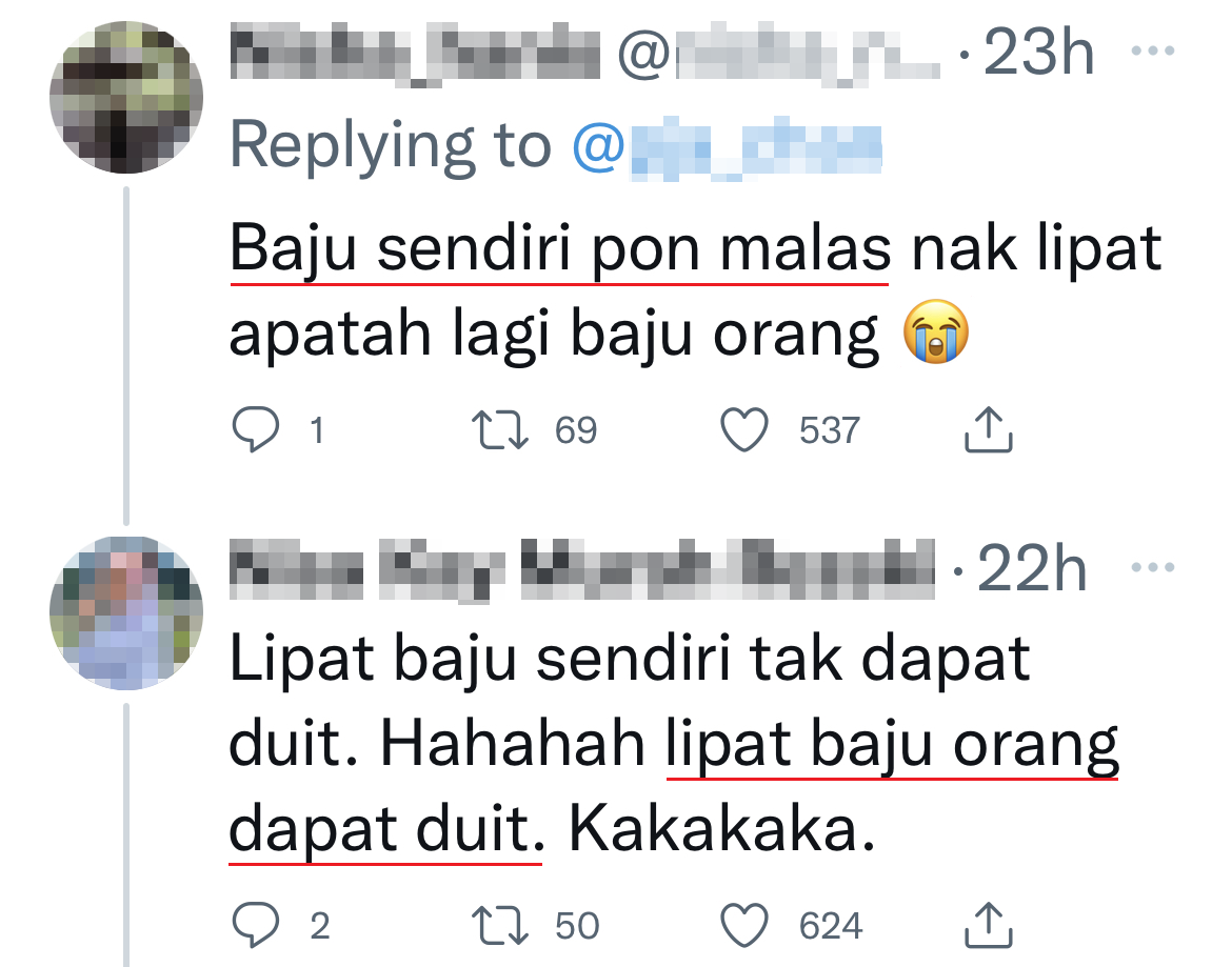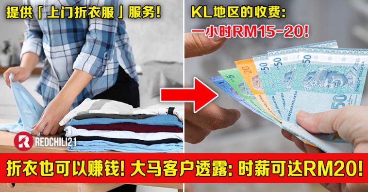 一名大马女子日前在 Twitter 发文透露,如今有一种付费服务是专门到客户的家帮忙折衣服,一个小时就能赚多达RM20!