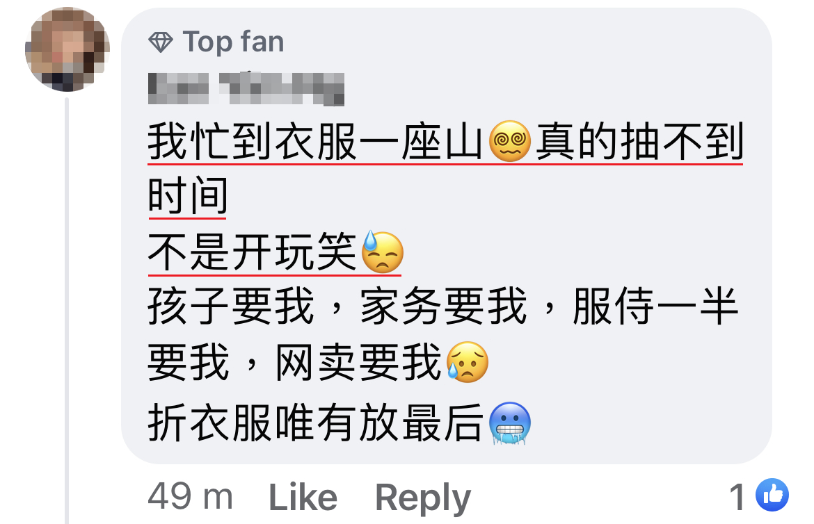 ▼ 随着该帖文引发热议后,贴主在评论区分享自己的经验:「我终于找到了一名印尼女子提供服务,她已经上门服务3个星期了,我也觉得很满意。她说我家的衣服很少,因为她曾遇过一名客户,折完的衣服可以堆满两间房间。」