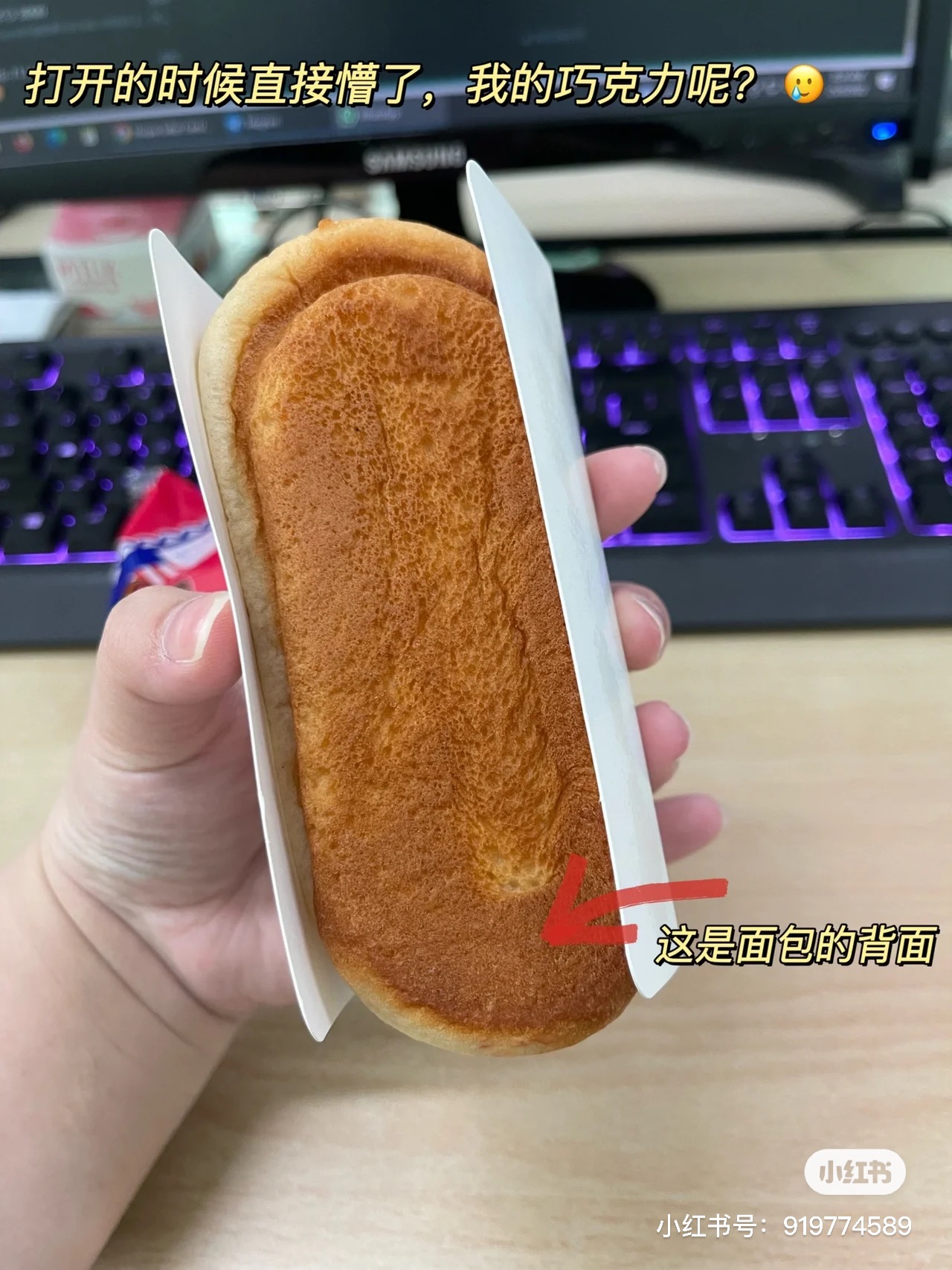▼ 原来 Cream 依旧存在着,只是面包倒反了!Cream 的那一面原本是朝上的,网友买到的是完全相反,Cream 紧紧贴着包装纸盒。