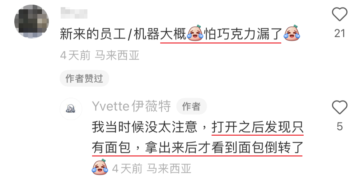 然而现在连面包都会翻车了,小红书网友意外买到“terbalik”的 Squiggles 面包,尴尬的不知道该怎么吃才好…..
