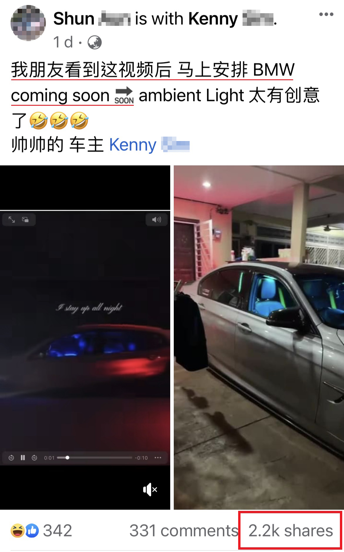 近日大马网友在脸书上传一段视频将近5,000人疯狂转发,配合七月半改装车子其实只需亿点点改变… 原来氛围灯是酱用的~