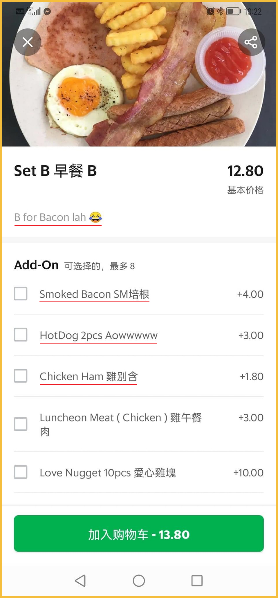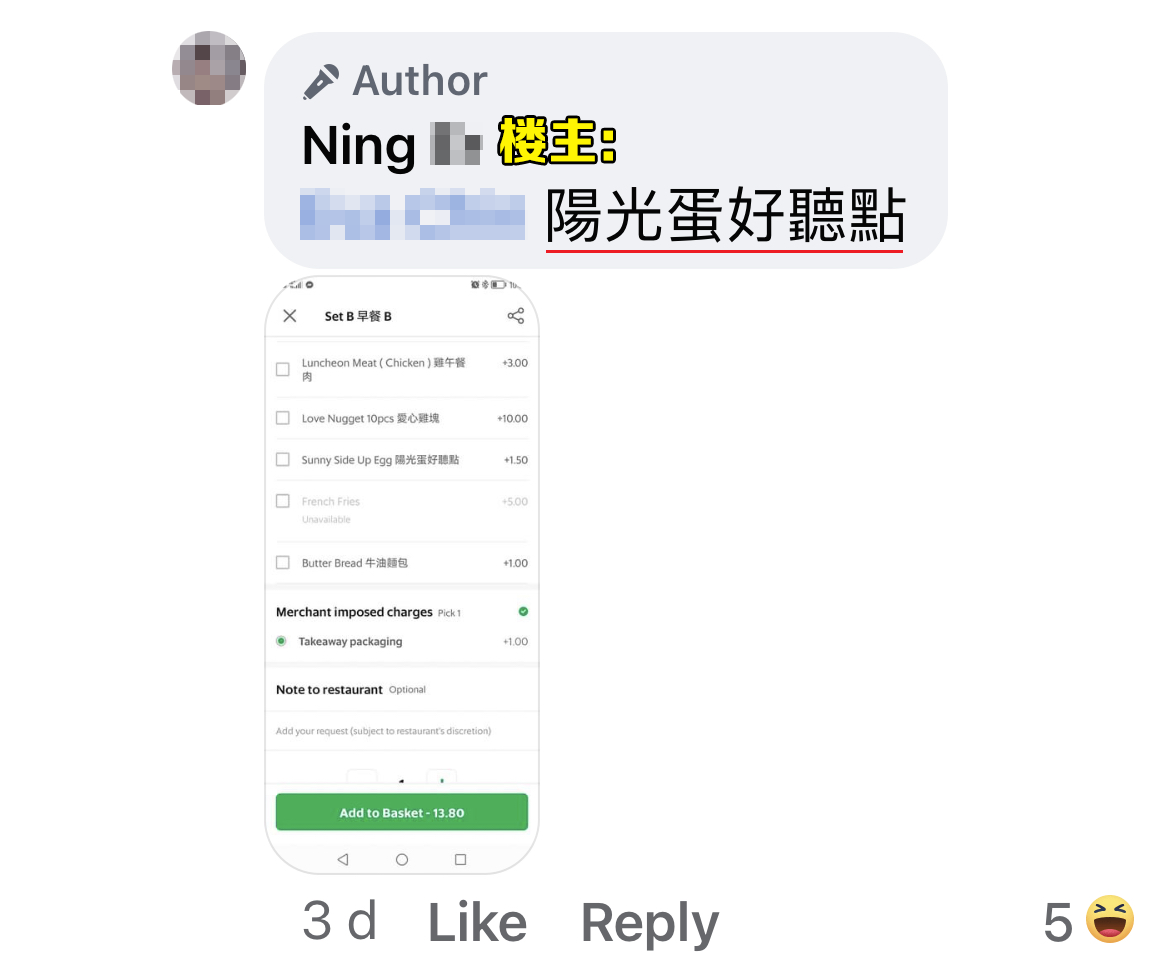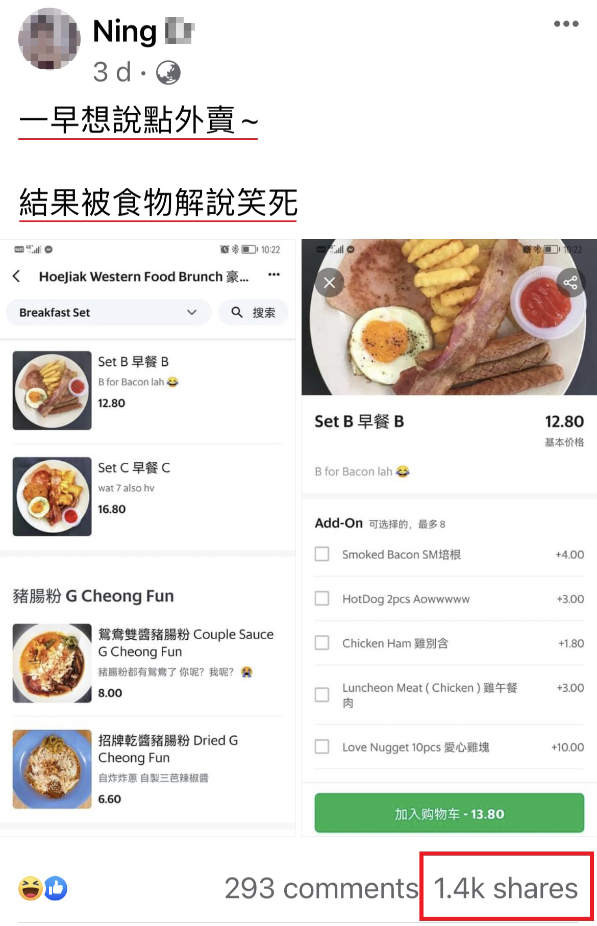 这位脸书网友近日PO文分享趣事,想要在 GrabFood 点西式早餐结果卖家的食物解说把她笑惨了!