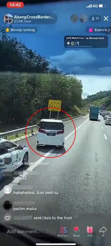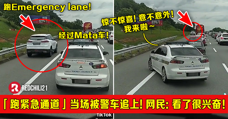 Highway塞车「违法跑紧急通道」当场被警车追上!大马网民超兴奋:跑比别人快是要另外收费的!