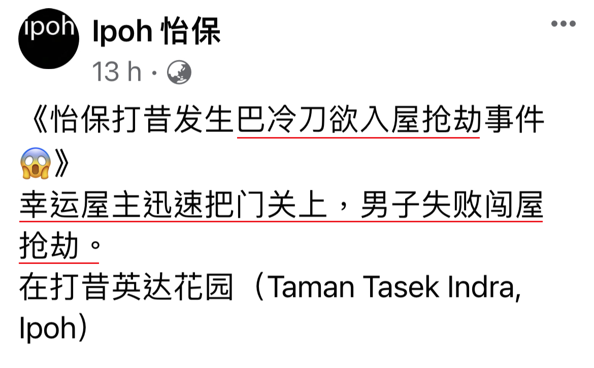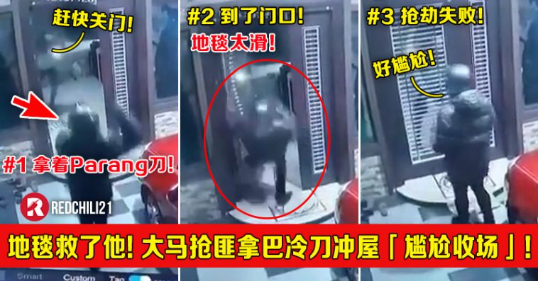 怡保一户人家日前曝光家里的CCTV画面,一名抢匪拿着巴冷刀冲向屋内,结果被门前的地毯害得最后尴尬立场!