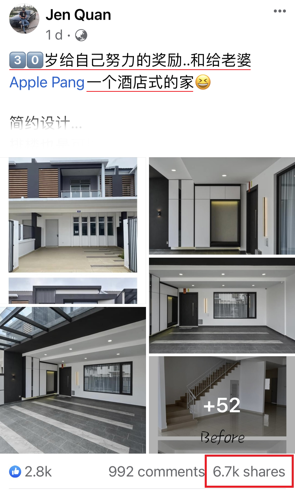 努力赚钱就是为了能够和伴侣一起拥有属于两人梦想中的爱屋!一名大马网日前PO文晒出装修后的新房子在脸书迅速爆红,原因当然就是:因为这个 Dream House 真的太美啦~