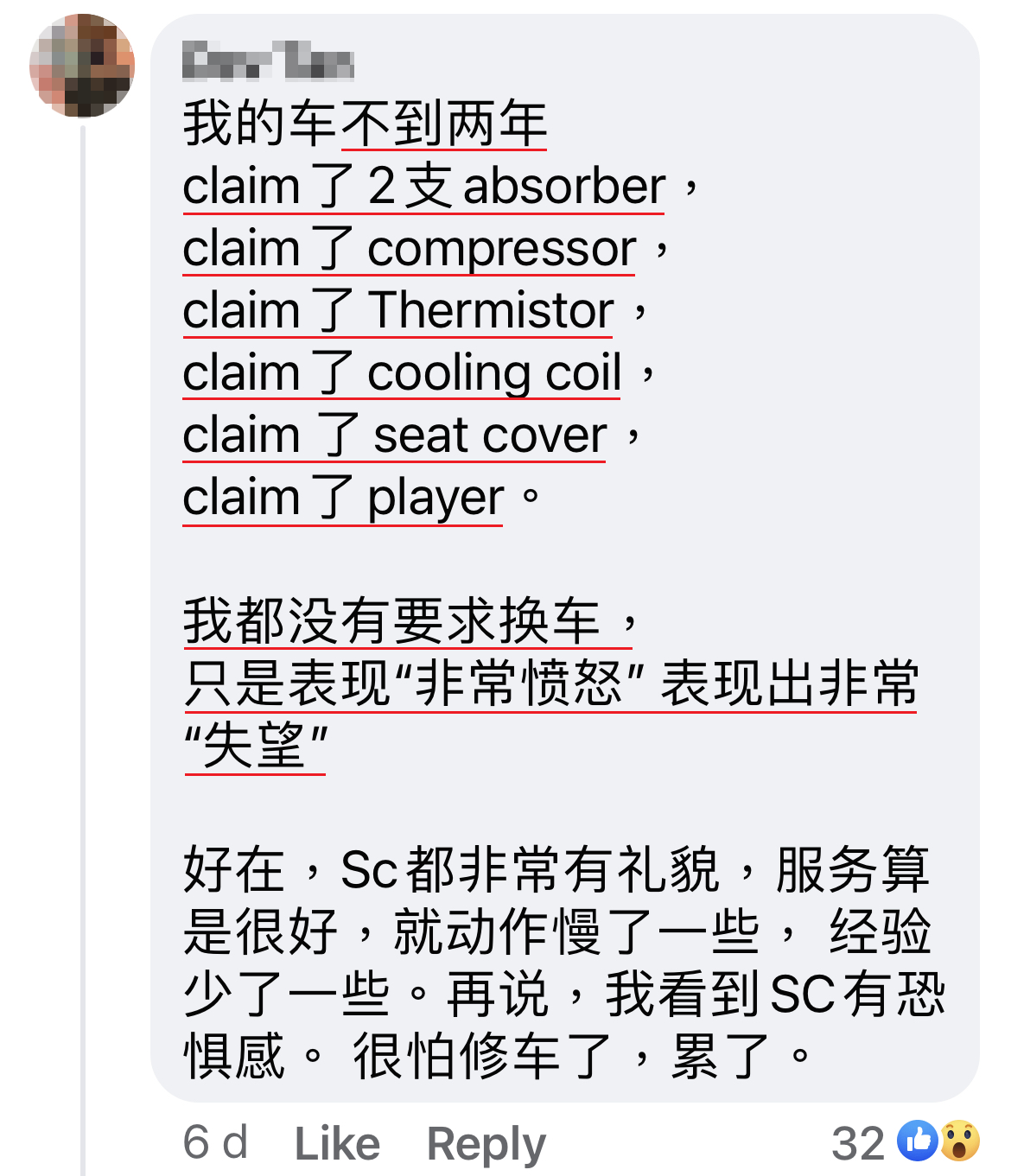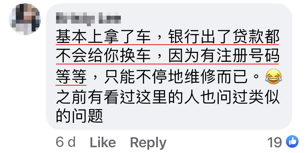 ▼ 评论区都表示:每个牌子都一样,换新车是不可能的。