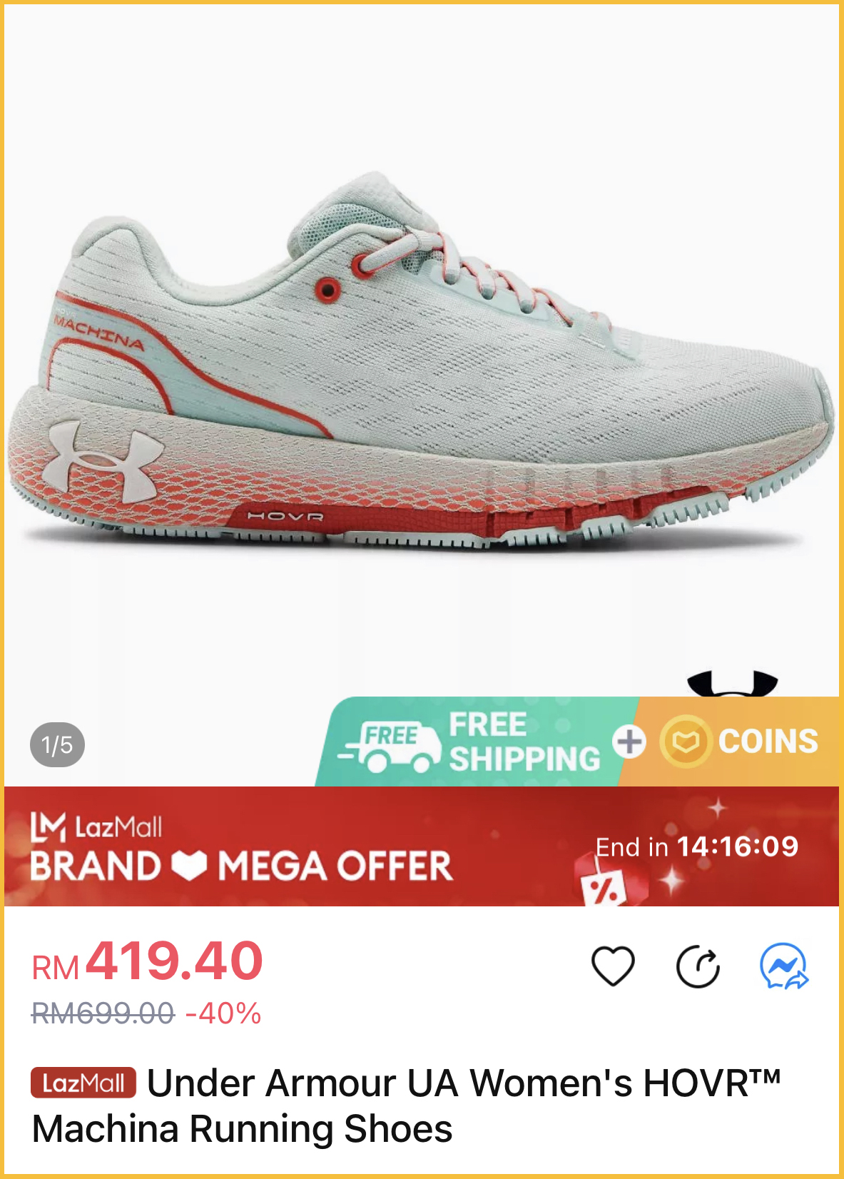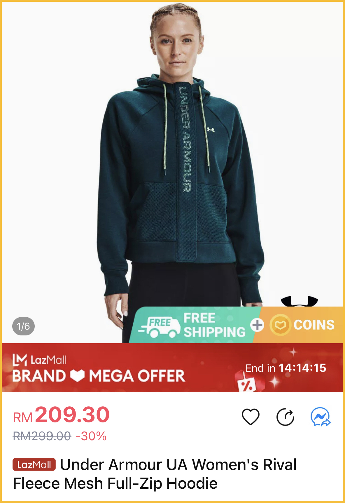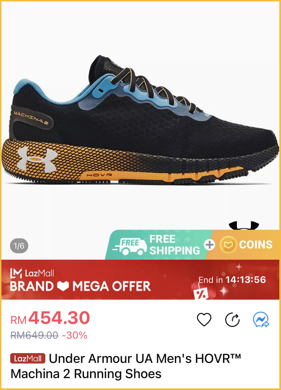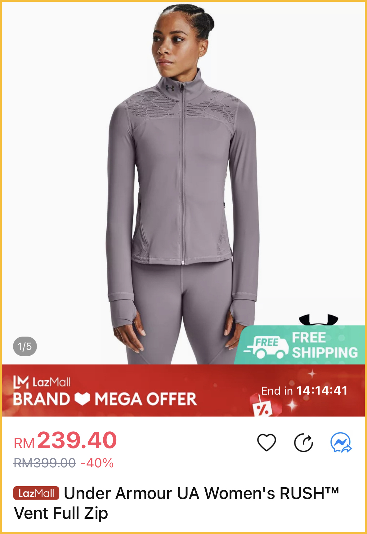 促销地点:Under Armour Lazada 官方店铺【点击这里】