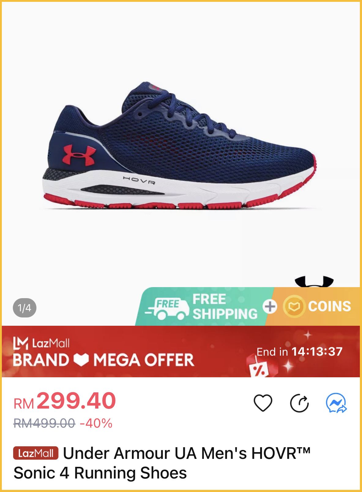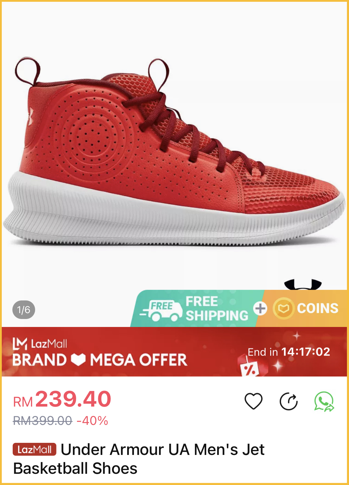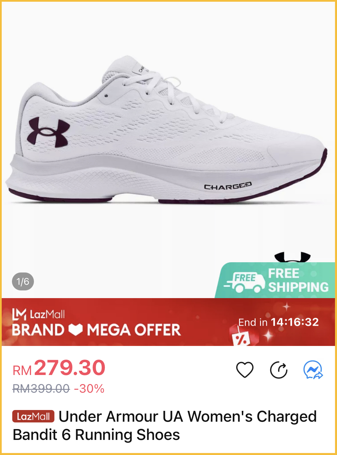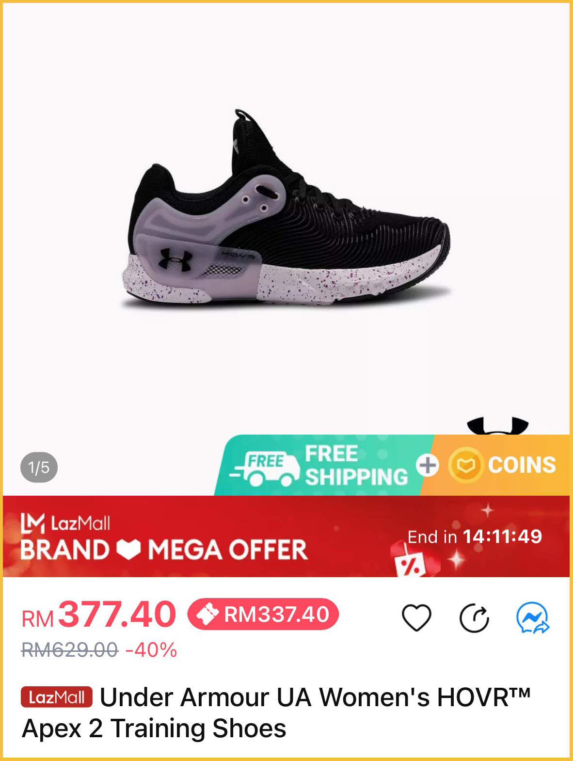 促销地点:Under Armour Lazada 官方店铺【点击这里】
