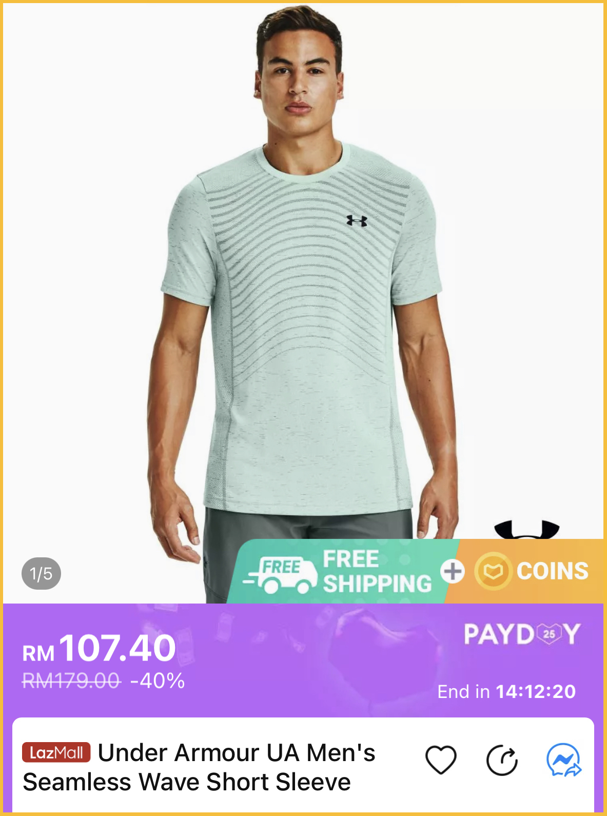 促销活动:LazMall Payday x Under Armour 折扣高达40%+额外30%折扣