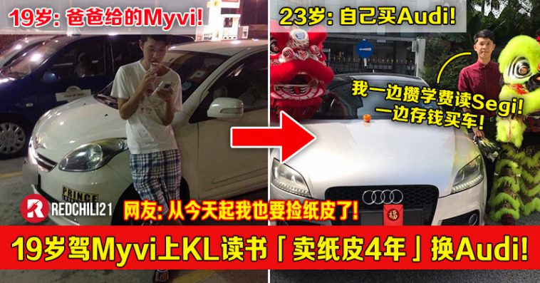 大马一名小哥哥19岁时就到吉隆坡半工半读,凭借卖纸皮攒学费和存钱4年内从 Myvi 换 Audi!如今26岁的他已经准备要换 GTI 啦~