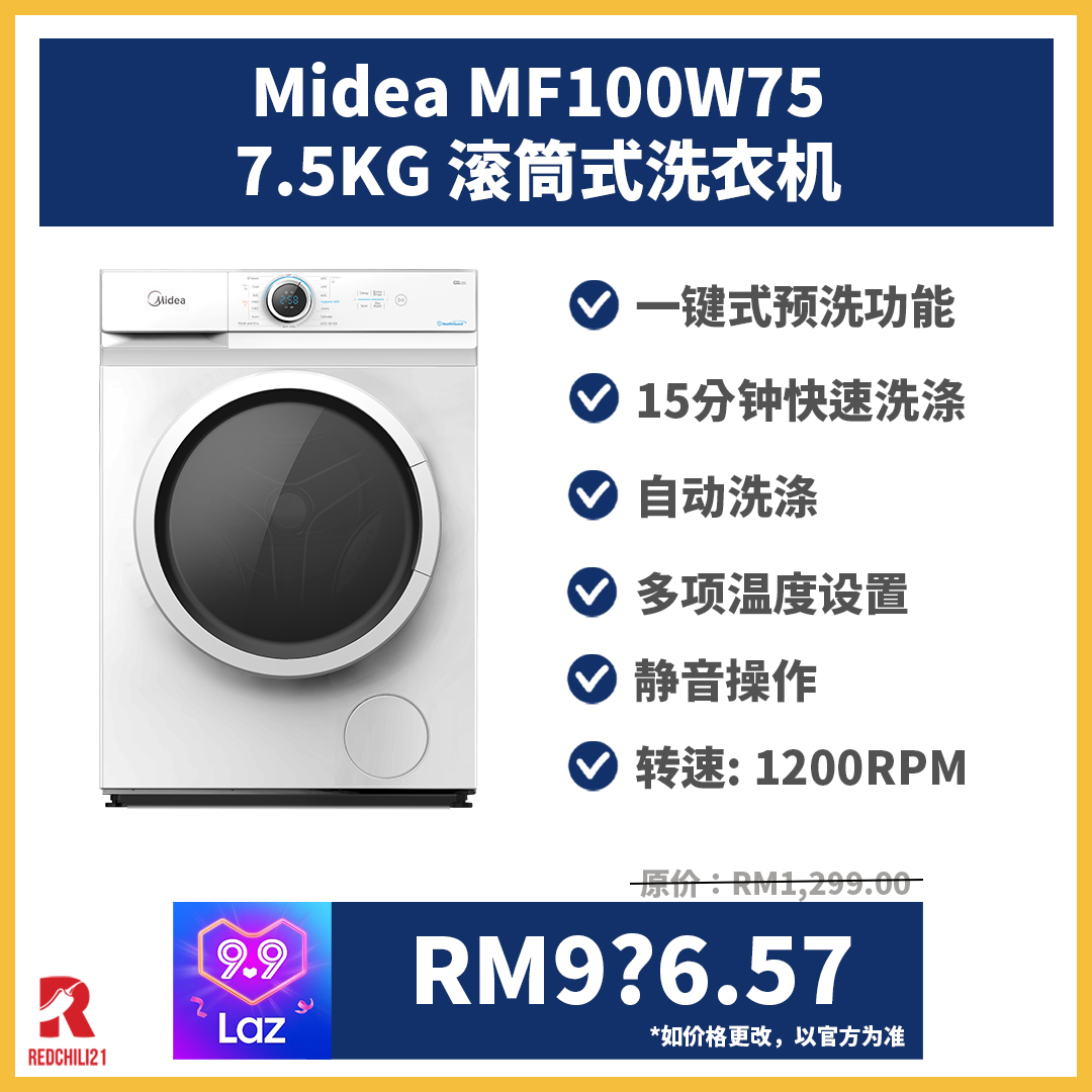 ▪ ① Midea MF100W75 7.5公斤 前置滚筒式洗衣机