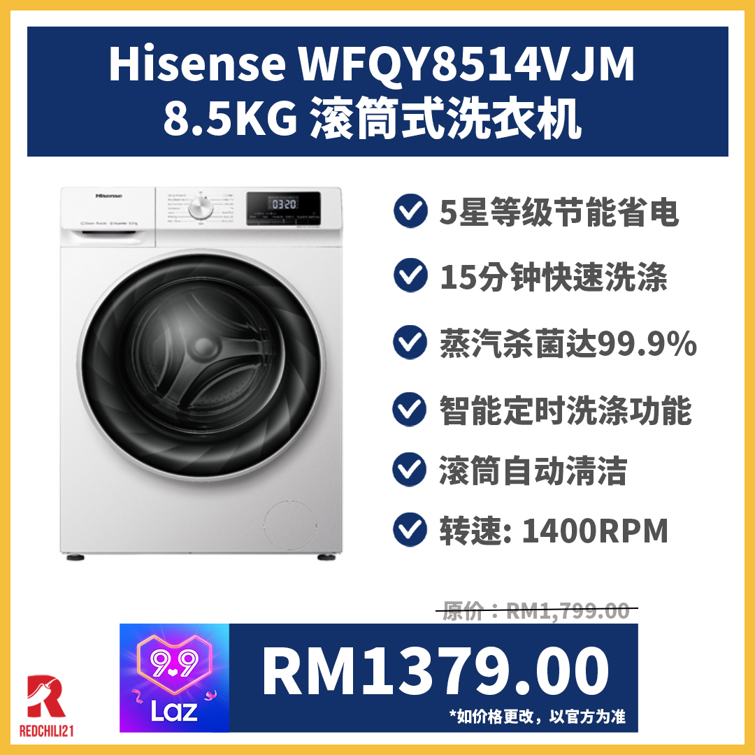 ▪ ② Hisense WFQY8514VJM 8.5公斤 前置滚筒式洗衣机