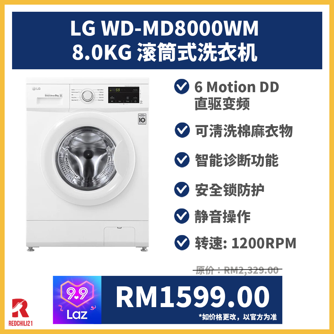▪ ④ LG WD-MD8000WM 8公斤 前置滚筒式洗衣机