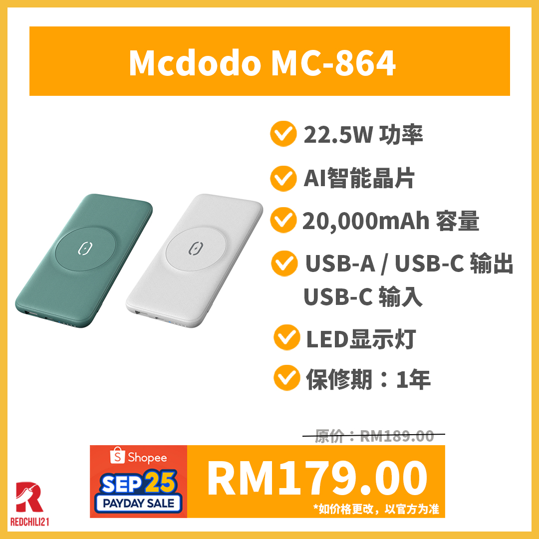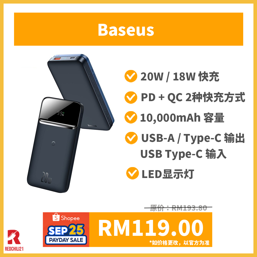 以下7款在 Shopee 高销量又高好评度的快充版充电宝,最低只需不到RM60哦!这次9月25日还有更便宜的优惠价呢!
