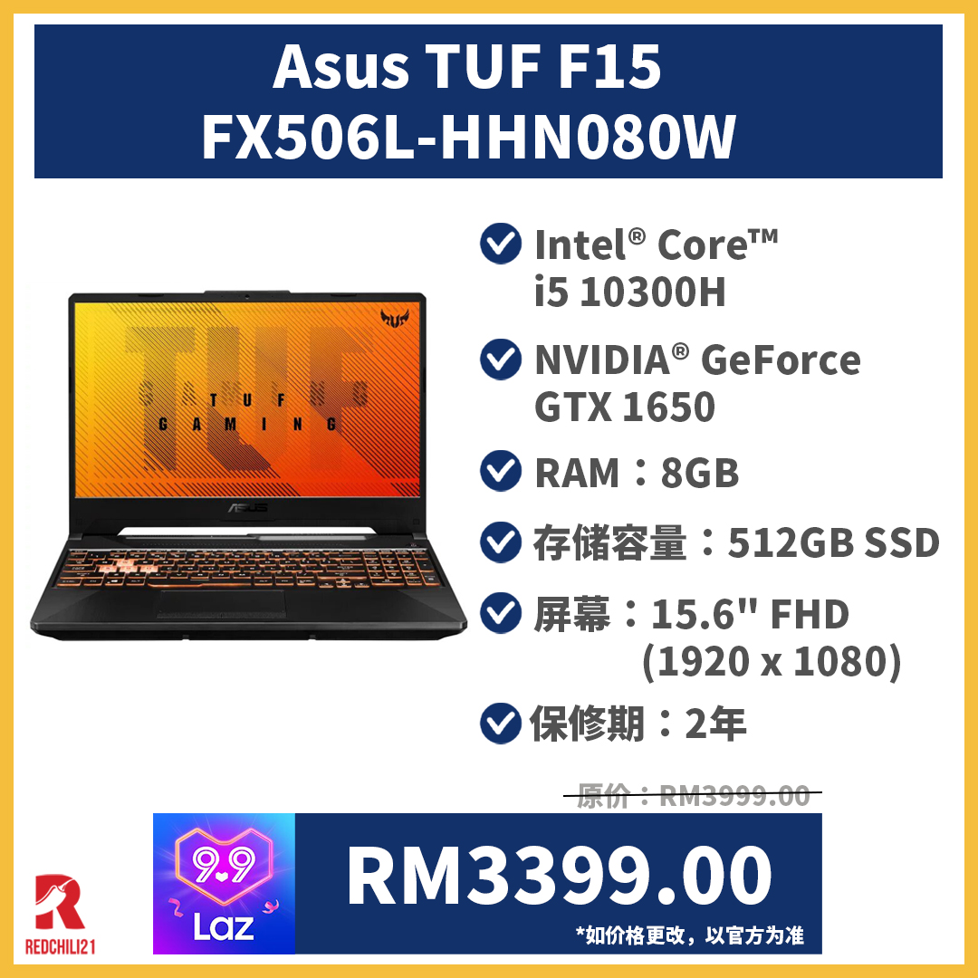 ▪ ① ASUS GAMING TUF F15 FX506L-HHN080W 游戏笔记本电脑