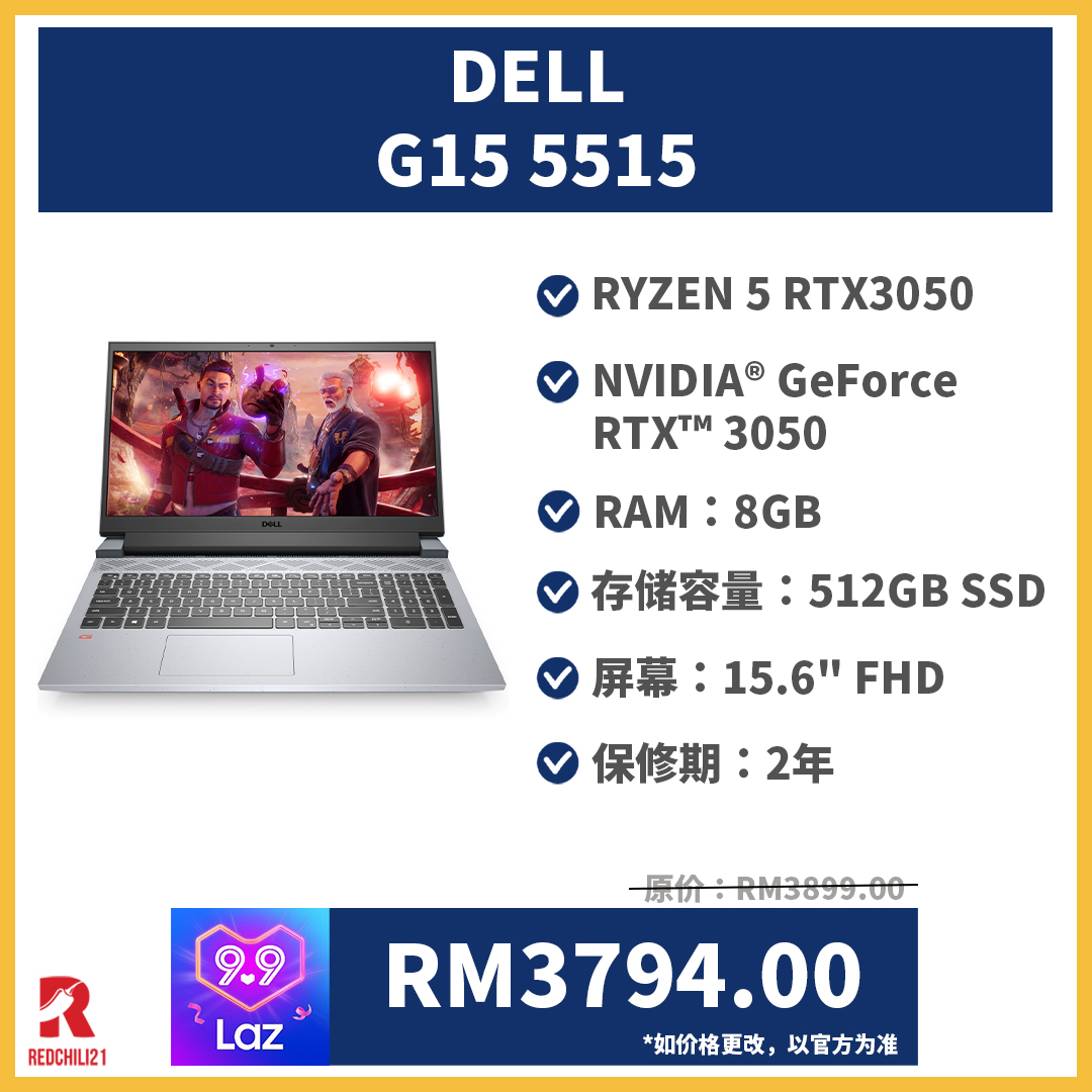 ▪ ③ DELL G15 5515 R5 RTX Gaming Laptop 游戏笔记本电脑