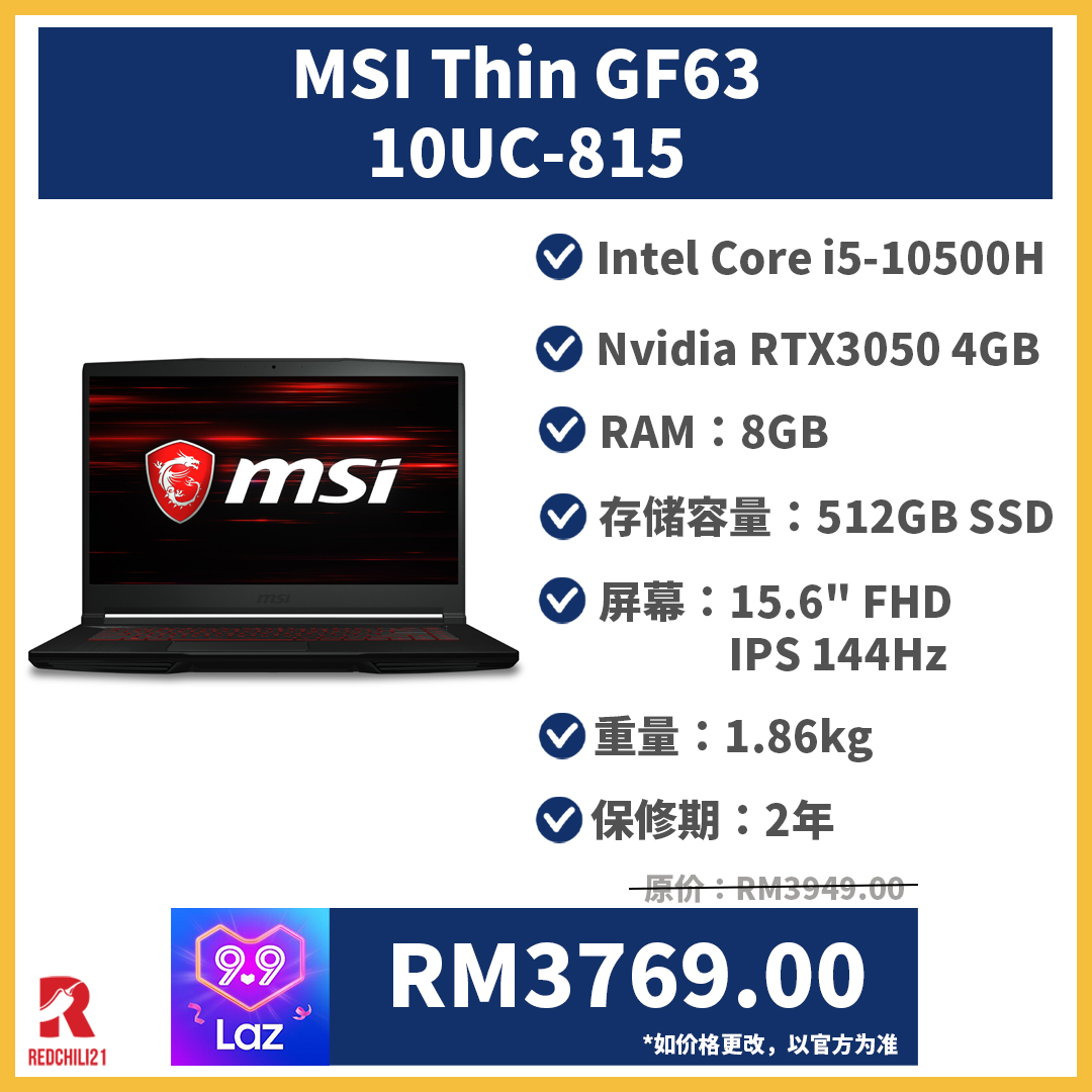 ▪ ⑤ MSI Thin GF63 10UC-815 游戏笔记本电脑