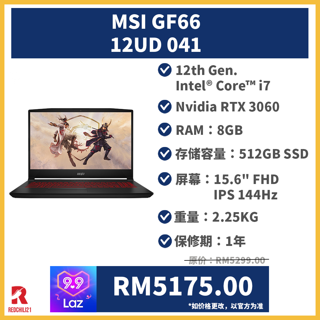 ▪ ⑥ MSI Gaming Laptop GF66 12UD 041 游戏笔记本电脑