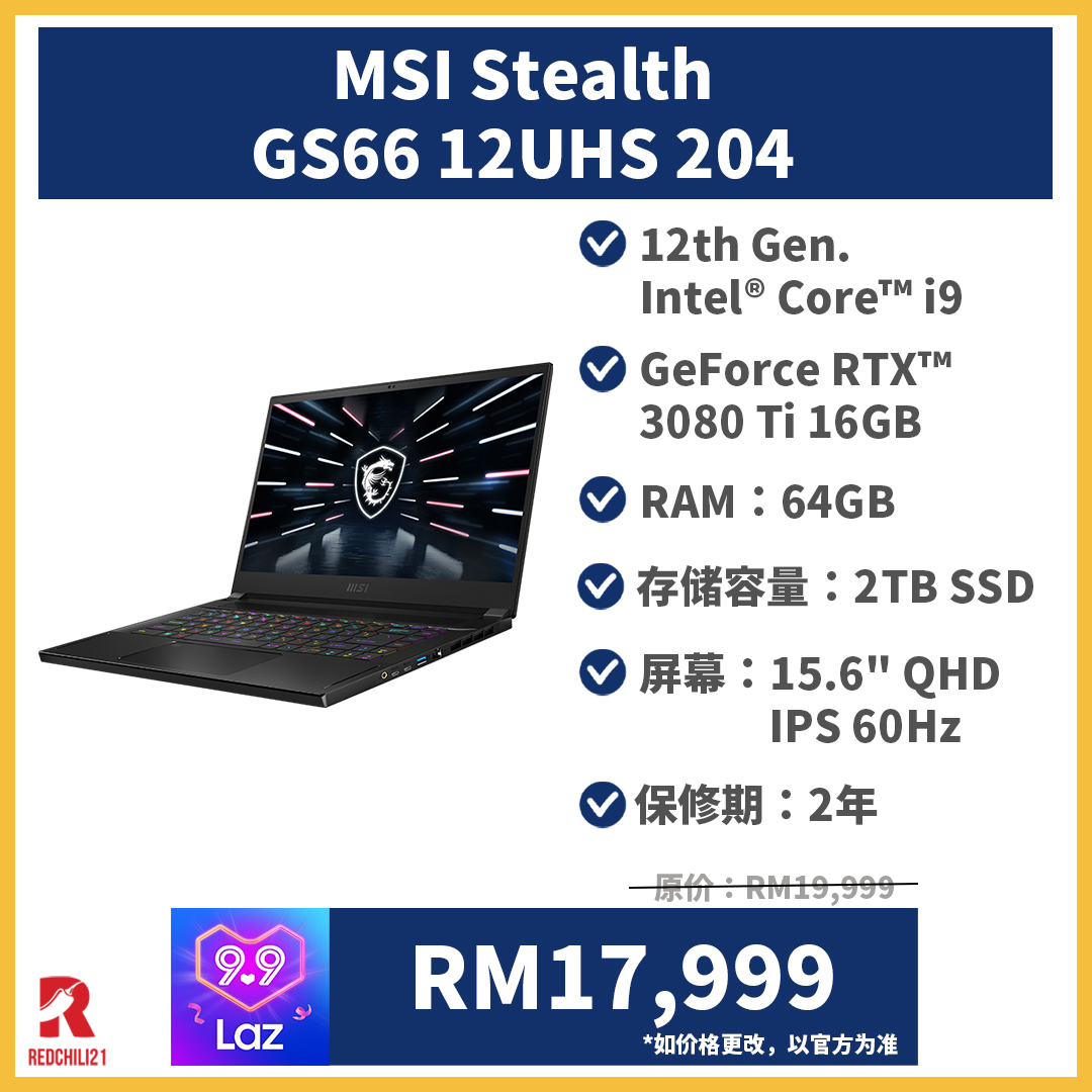▪ ⑦ MSI Stealth GS66 12UHS 204 游戏笔记本电脑