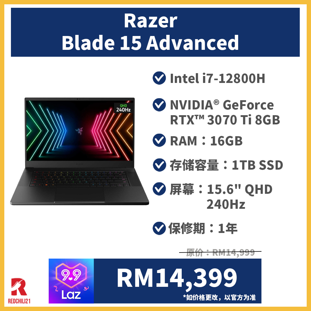 ▪ ⑧ Razer Blade 15 Advanced 游戏笔记本电脑