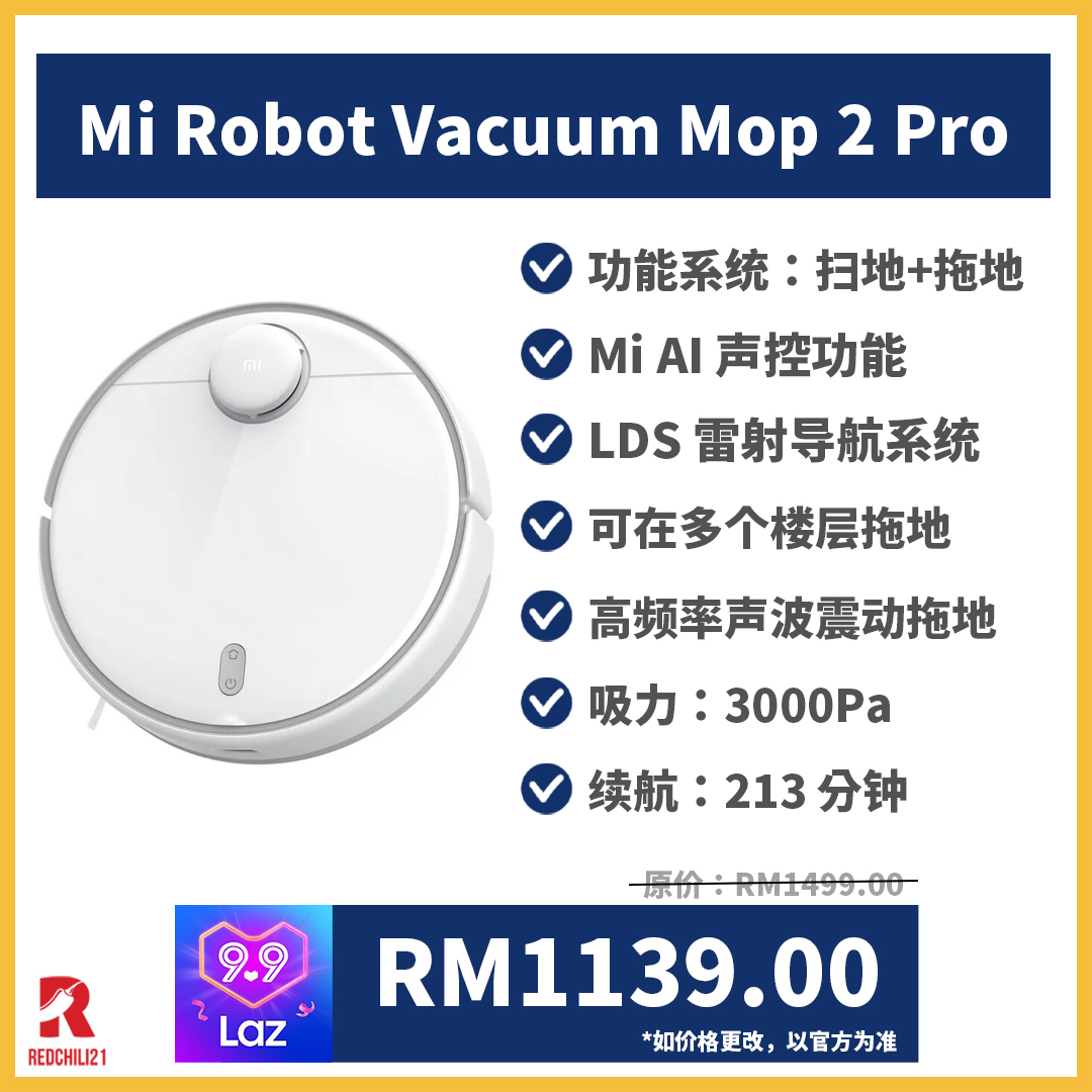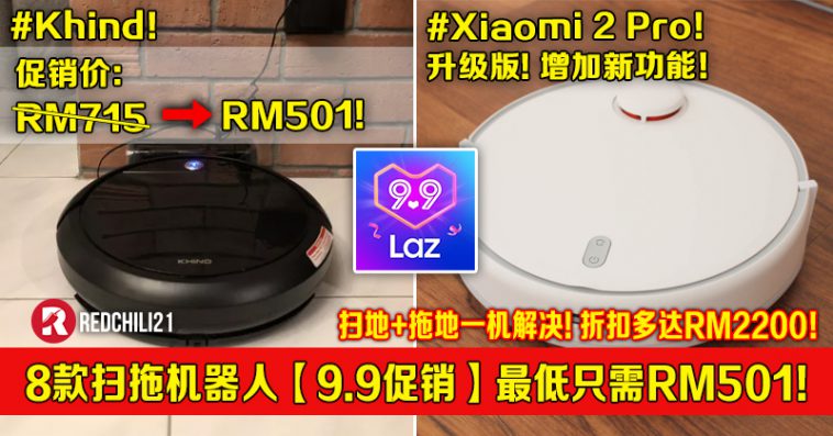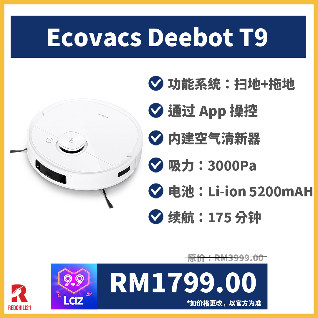 接下来就为大家推荐销量超高的8款扫地+拖地机器人,趁着这次 Lazada 9.9大促销购买,可享更多折扣优惠哦!