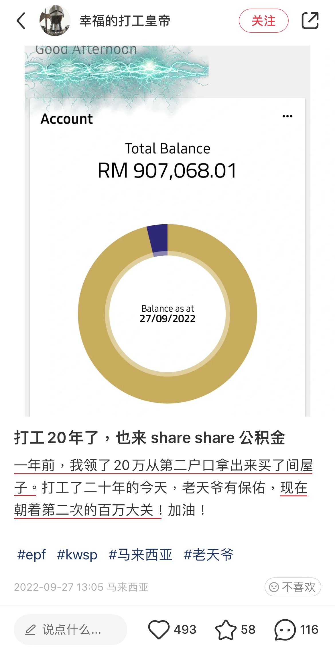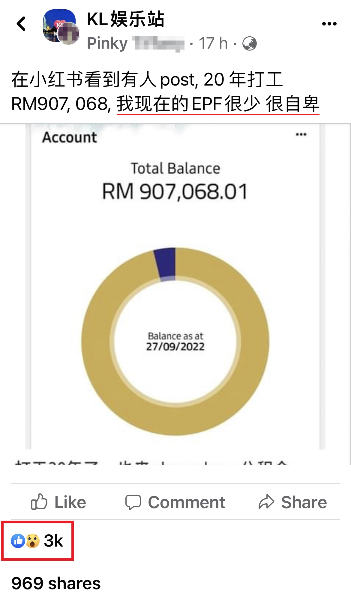 大马一名打工人近日在小红书晒图,累计长达20年的公积金金额竟然将近一百万!该帖子迅速爆红后被分享到脸书,并掀起广大网民的热烈讨论。