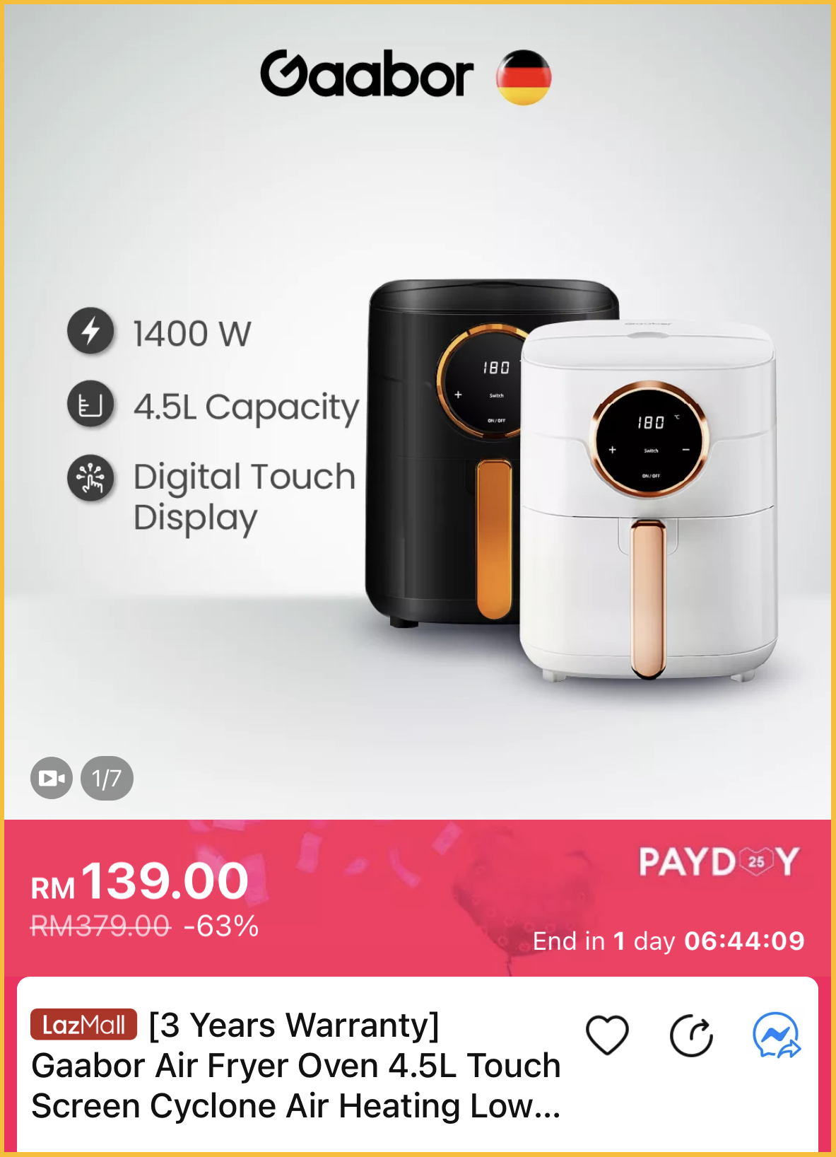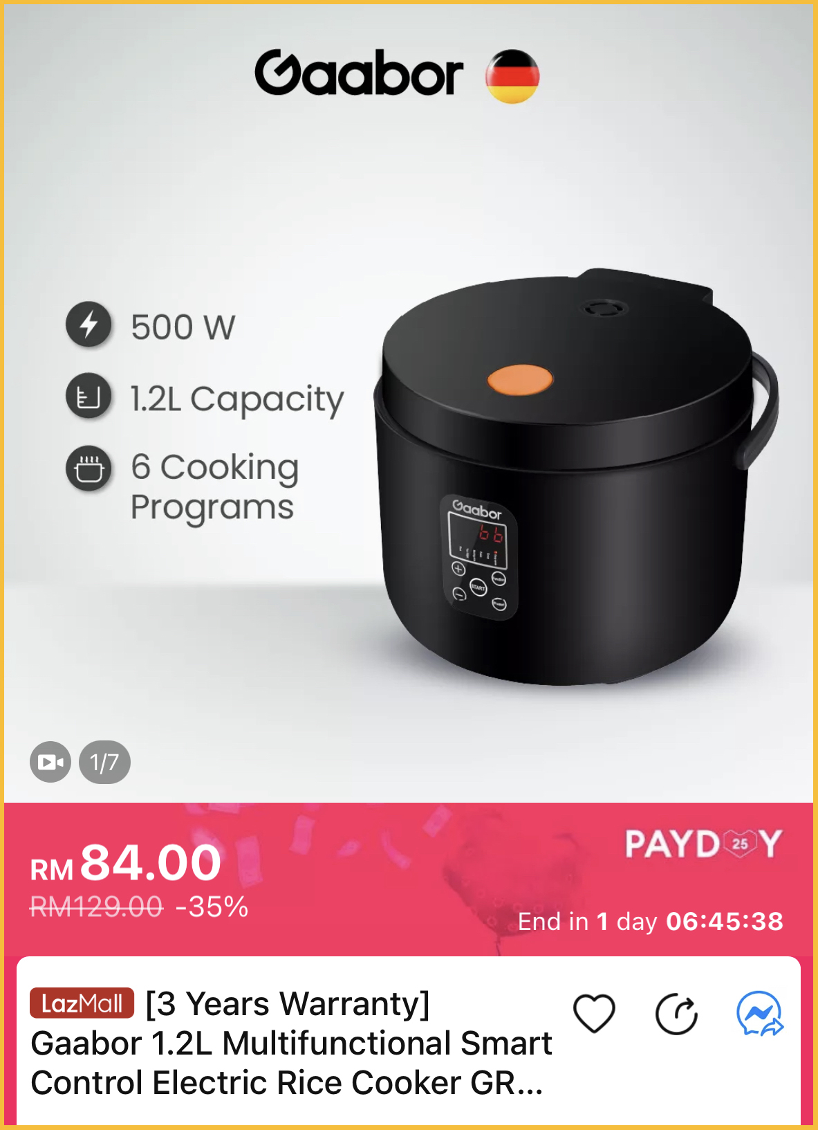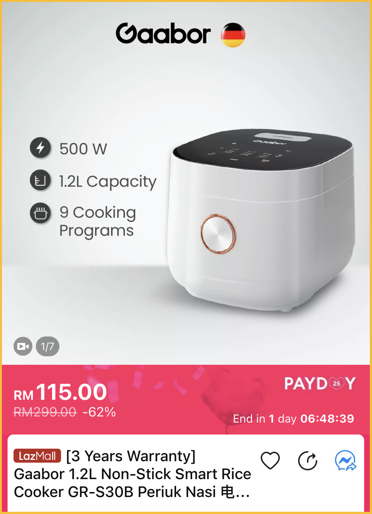 高颜值、多功能又价格亲民,说的就是 Gaabor 家电啦~这次 Lazada Payday 大优惠,Gaabor 官方店铺多款商品折扣高达60%!下单买买买!