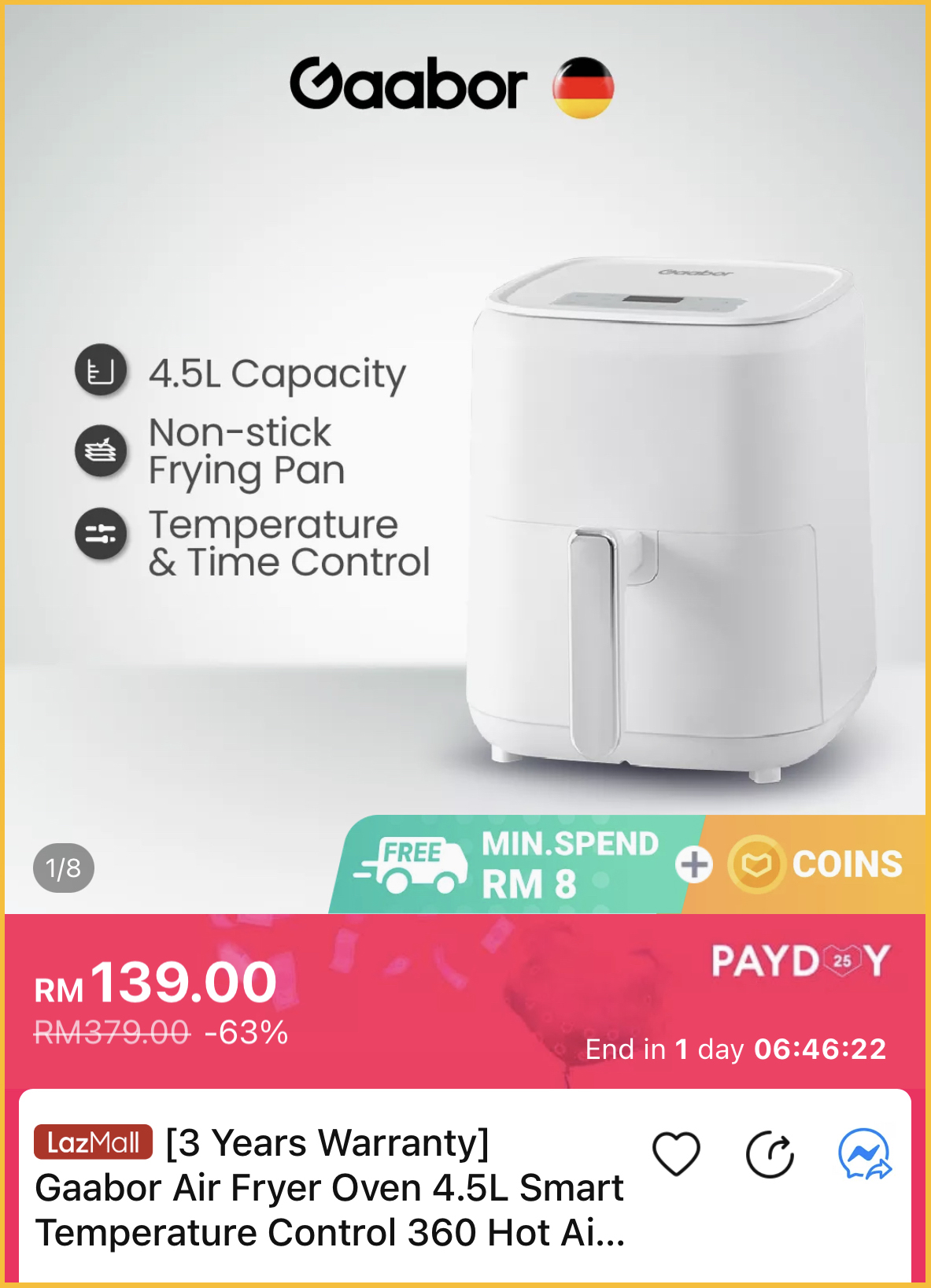 ▪ ⑧ Gaabor Air Fryer Oven 4.5L GA-E45A01/02 空气炸锅