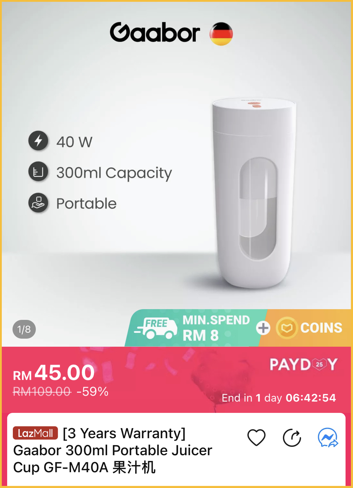 RM109.00 RM45.00 ⏩ Lazada 购买链接【点击这里】