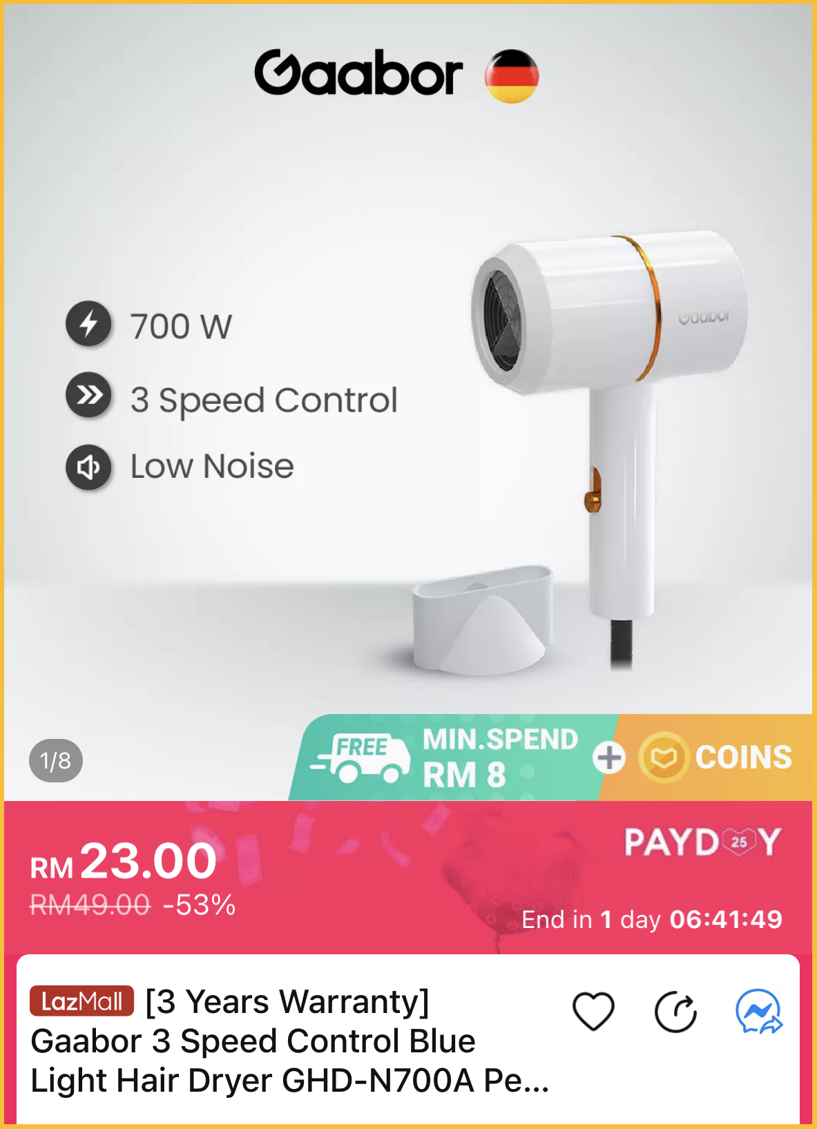 ▪ ① Gaabor 3 Speed Control Blue Light Hair Dryer GHD-N700A 吹风筒